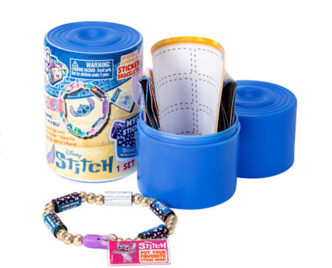 Unleash a world of crafting magic with these colorful Sticki Rolls featuring everyone’s favorite experiment, Stitch, from Disney! Kids peel and stick soft foam stickers onto pre-designed scenes or freestyle on cards, notebooks, posters—anything goes! The tactile peel-and-stick format is spotless, portable, and perfect for creative downtime. Includes 50 stickers, 1 elastic cord with clasps, 1 charm tag, 1 collector’s manual, beads, sticki book collection page.